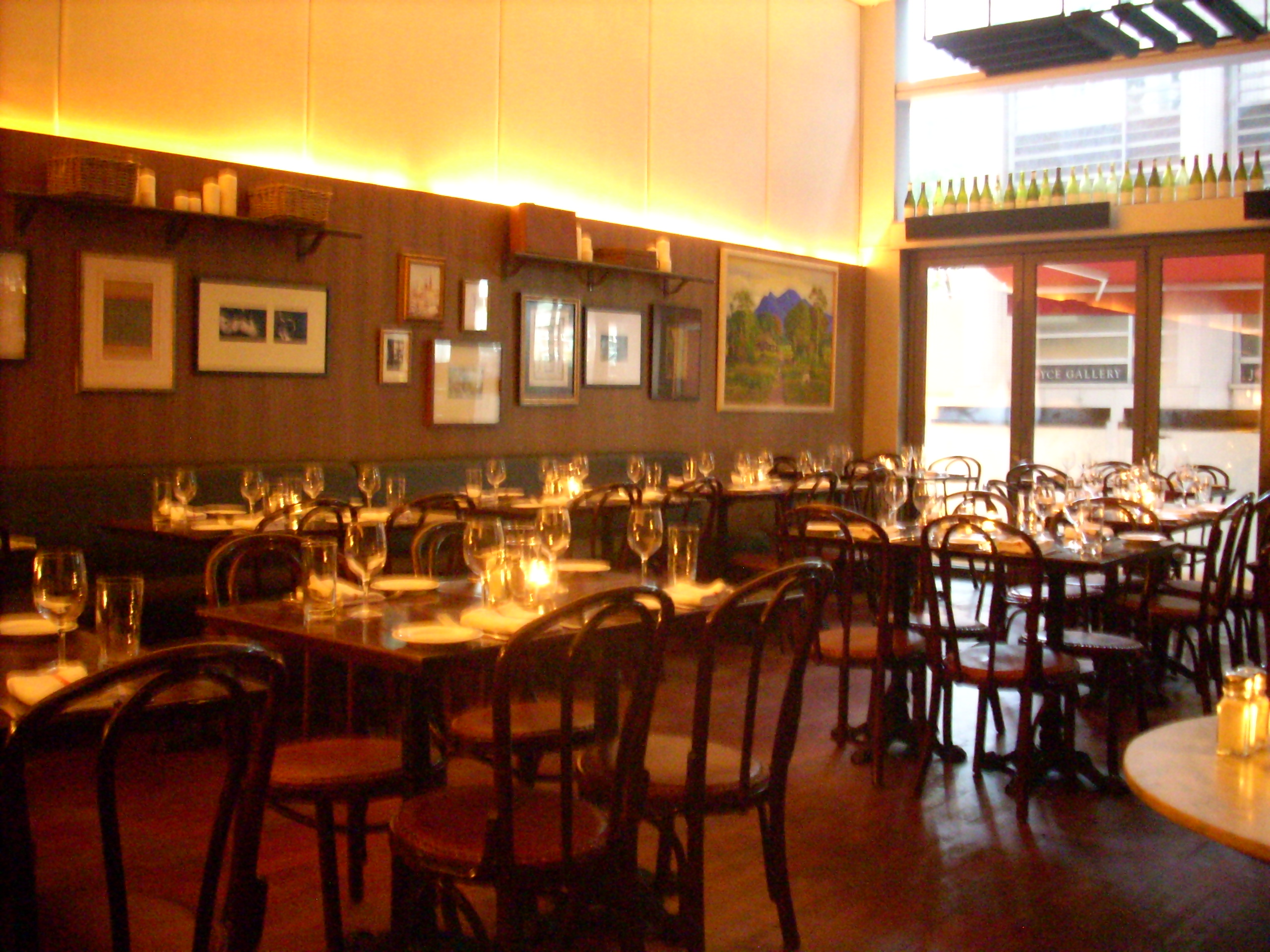 Aiming for a modern European brasserie style, with menus on blackboards and pictures scattered at random on the walls (a random-ness I’m sure took hours to achieve!), it has a nice relaxed atmosphere. For dinner, the lights are dimmed and it’s a rather cosy kind of darkness, even when the place started to get packed around 8pm.