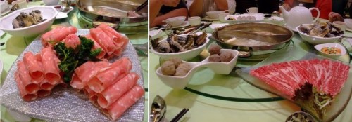 The most traditional hotpot restaurant I’ve been to is Little Sheep, a franchise so huge that you can even buy their own branded hotpot stock from supermarkets. Here, the huge metal pot is sunk into the middle of the table with a Lazy Susan round it, so everyone mucks in, cooking bits either for themselves or leaving them to stew for communal consumption! It all gets a bit hot and steamy so they even put covers over your chairs (and coats hanging on the back of them) to prevent you getting too much hotpot vapour on your stuff!