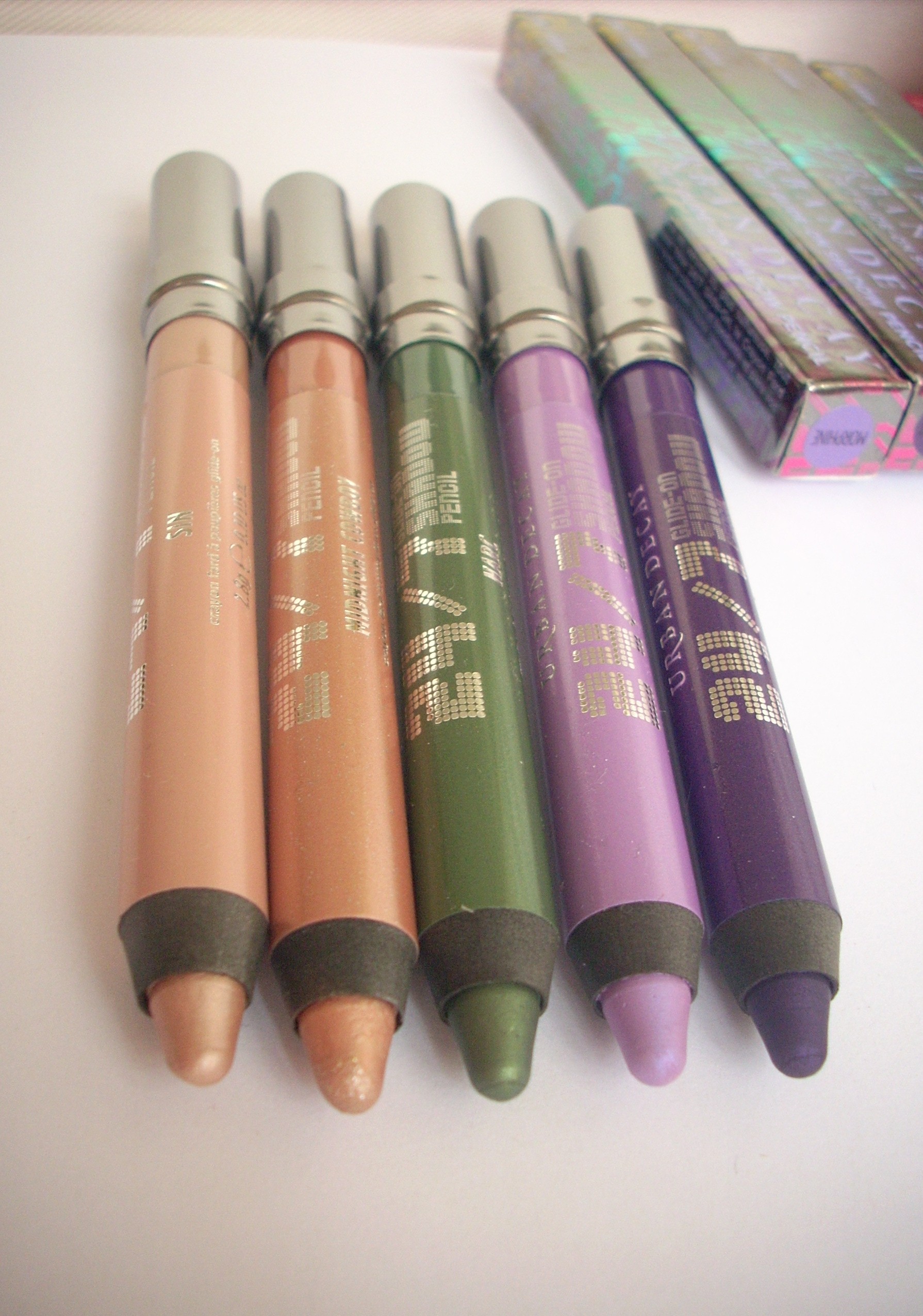 My friend Mirander went to Singapore recently so I asked if she wouldn’t mind looking for some Urban Decay things for me – and lovely girl that she is, she agreed! Seriously, Urban Decay is my most missed cosmetics brand out here – as you already know, their 24/7 Glide-On Eye Pencils are one of my make-up miracles and I love their range of exciting edgy colours together with their commitment to awesome quality, which (for me) is unmatched. Of the things I asked Mir to find, only the 24/7 Glide-On Shadow Pencils were in stock, so she grabbed me a few of these.