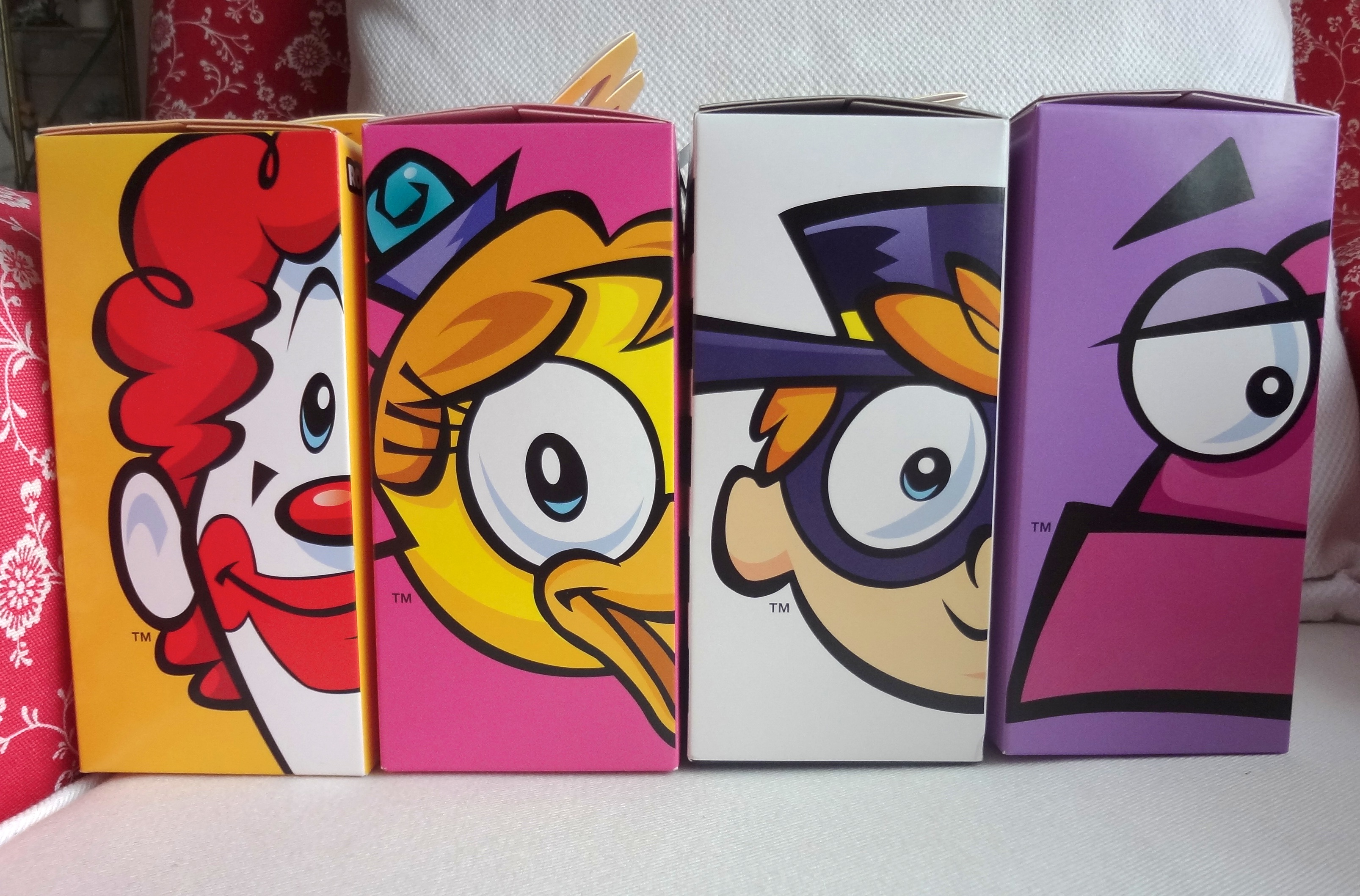 I loved the different drawings on both sides of each box, the minimalist costume design on the back of the packaging and the cut-out golden arches handles – they really do look like collectibles. Which is, of course, what I will be telling my auntie when she screams at me about the amount of random mo liu accumulating dust around the house. They’re an investment, don’t you see?!?!
