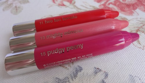 Clinique Chubby Sticks in Two Ton Tomato, Mighty Mimosa and Pudgy Peony, $160; see all Clinique stores and counters in Hong Kong here.