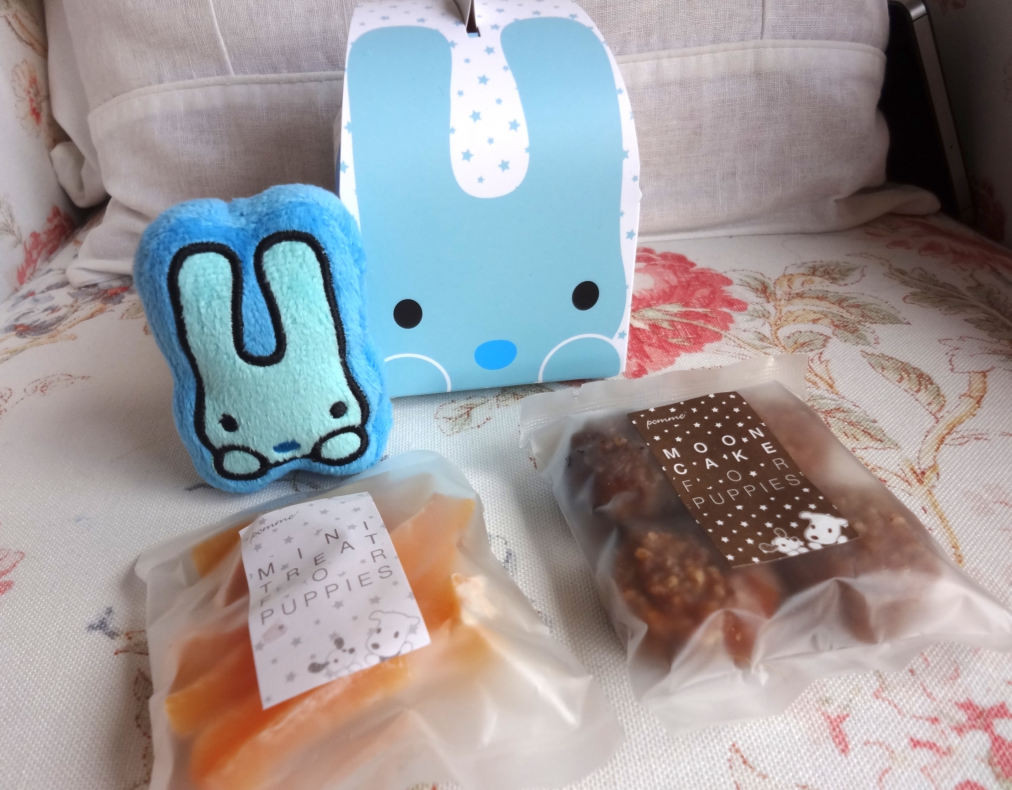 Having not made my usual trip to see the Mid-Autumn lanterns this year, this was the closest I got – a Mid-Autumn lantern (sort of) for my dog! Grrrrr… how cute is this?! It’s shaped like the traditional rabbit lantern and opens up to reveal some special mid-autumn treats for my pup, namely a rabbit-shaped toy, some doggie mooncakes and some other orange stick-shaped treats.