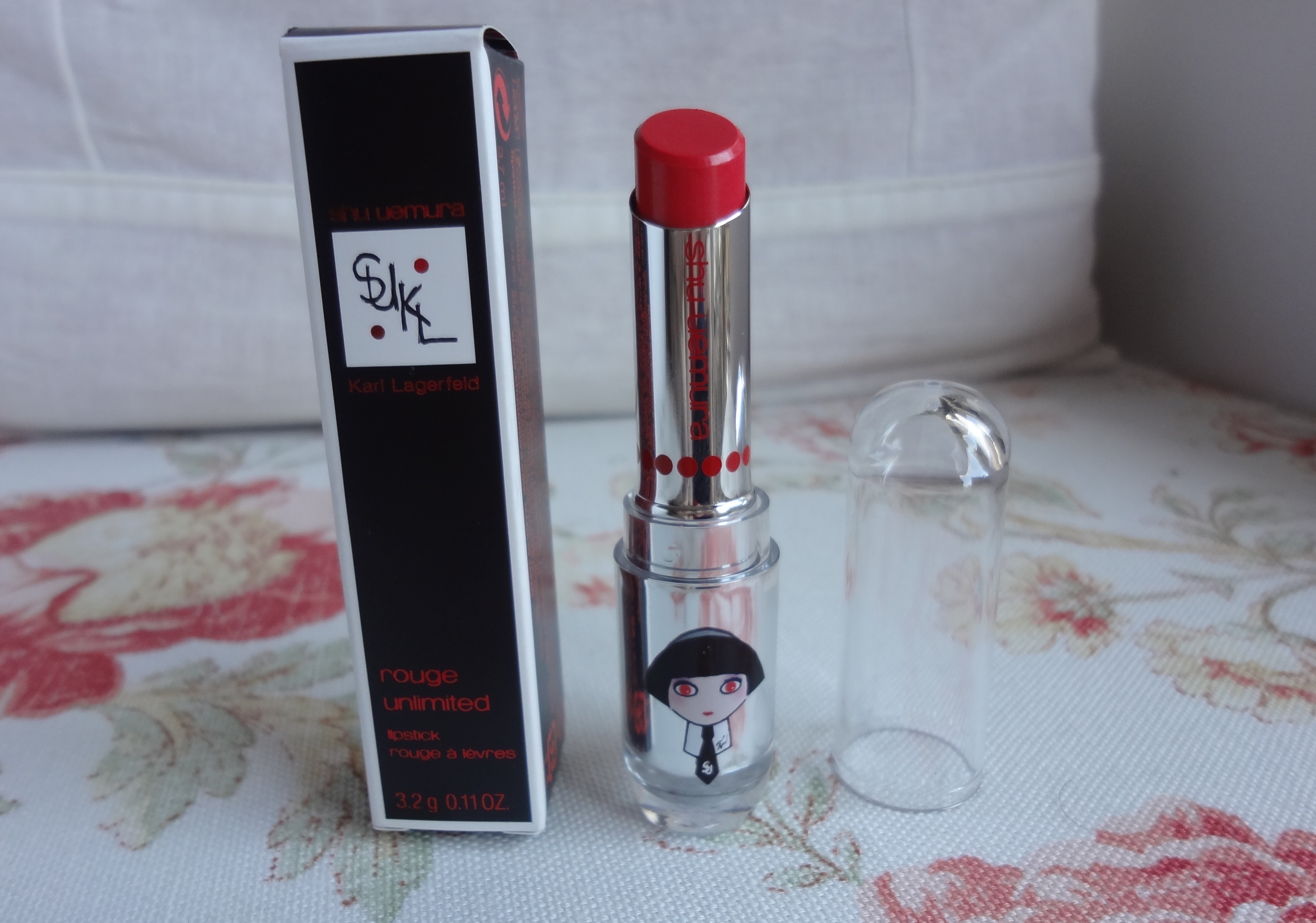 Christmas is normally my favourite time of the year for make-up – lots of glitter and lots of gift sets! However, this year’s collections are kind of lacking for me, and so far, the only item I have actually bought is this Karl for Shu Uemura Rouge Unlimited Lipstick in Mon Shu Red.