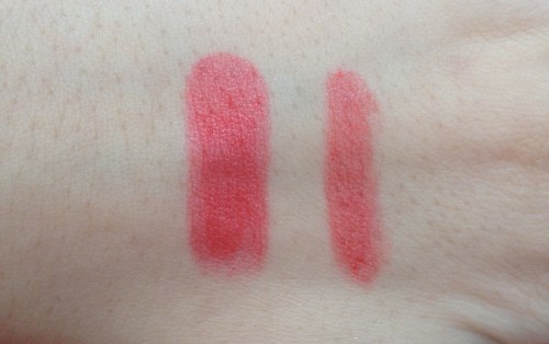 Left to right: Shu Uemura Mon Shu Red vs Clinique Two Ton Tomato