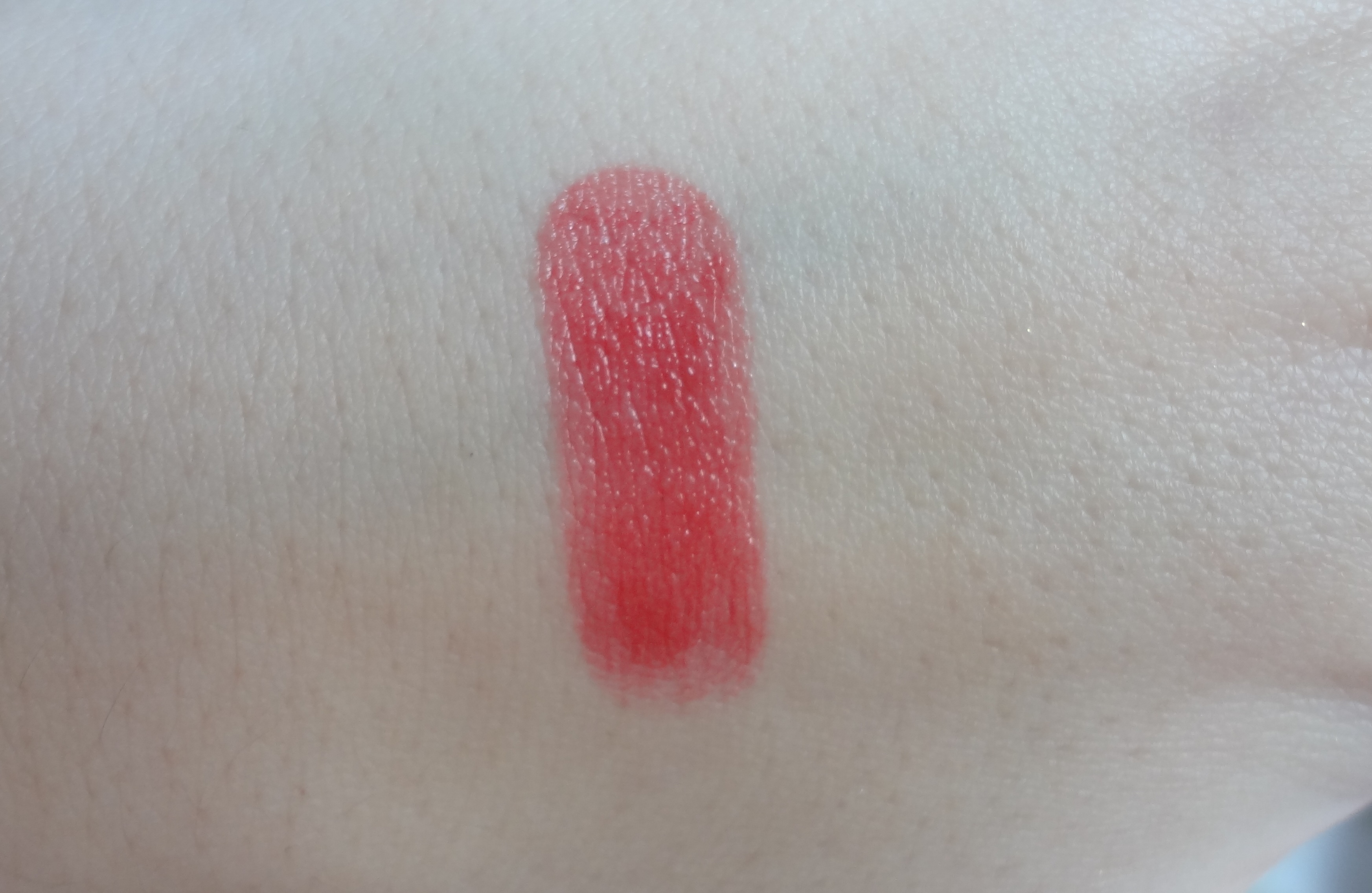 Mon Shu swatches as a very vivid bright red on my hand but actually (like many reds), it ended up leaning quite pink on my lips. It’s a cheerful vibrant pop of scarlet that’s not as intense or heavy as many uber-pigmented red lipsticks, yet still has enough richness and opacity to make it worth it. For me, it’s definitely the signature pick of the Karl for Shu Rouge Unlimited colours – the rest are two rather too pale pinks and beiges, plus a vampy burgundy, whereas this hones in on the perky red from the mon shu girl design itself.