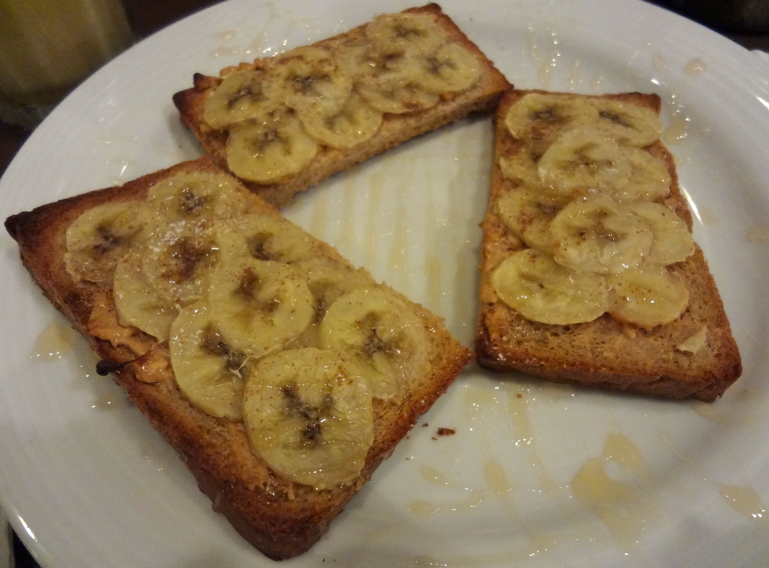 Next trip, Mirander went for peanut butter and banana on toast – a combination I’ve clearly not eaten nearly enough of over the years as it was more-ishly addictive. I loved the lashings of syrup and cinnamon on top; I didn’t love the uber-charred crusts that had been left on the toast though.