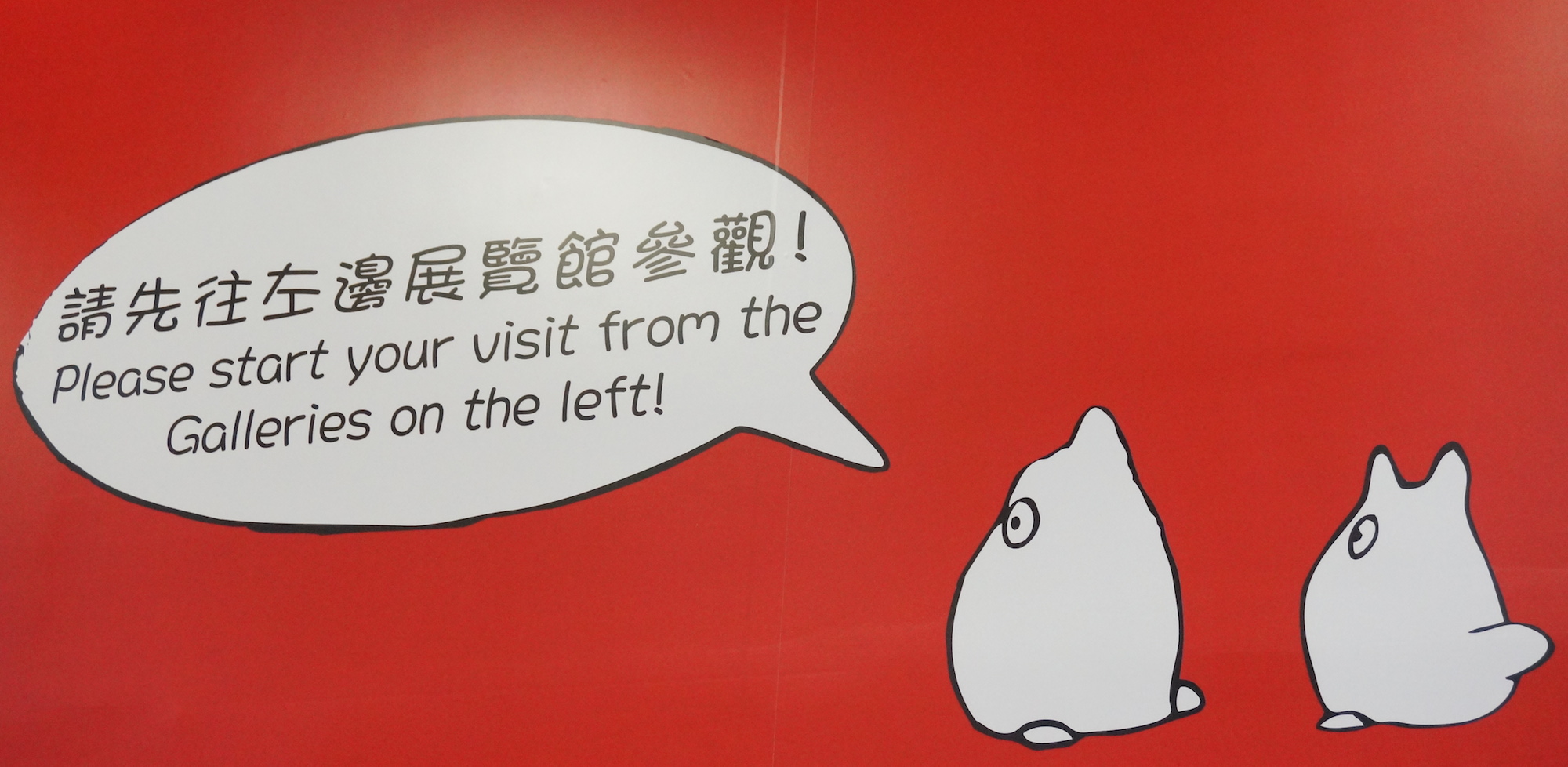 As expected, the biggest queues at the Studio Ghibli Layout Designs exhibition are for the cute photo opportunities (see above)… and the gift shop. Beware: lots of things were already sold out when I visited, and they won’t give you a carrier bag if your purchase is under $200 – which meant I had to cart around my A4 Miyazaki print for our entire train journey home (including three transfers!). Thanks Hong Kong Heritage Museum.