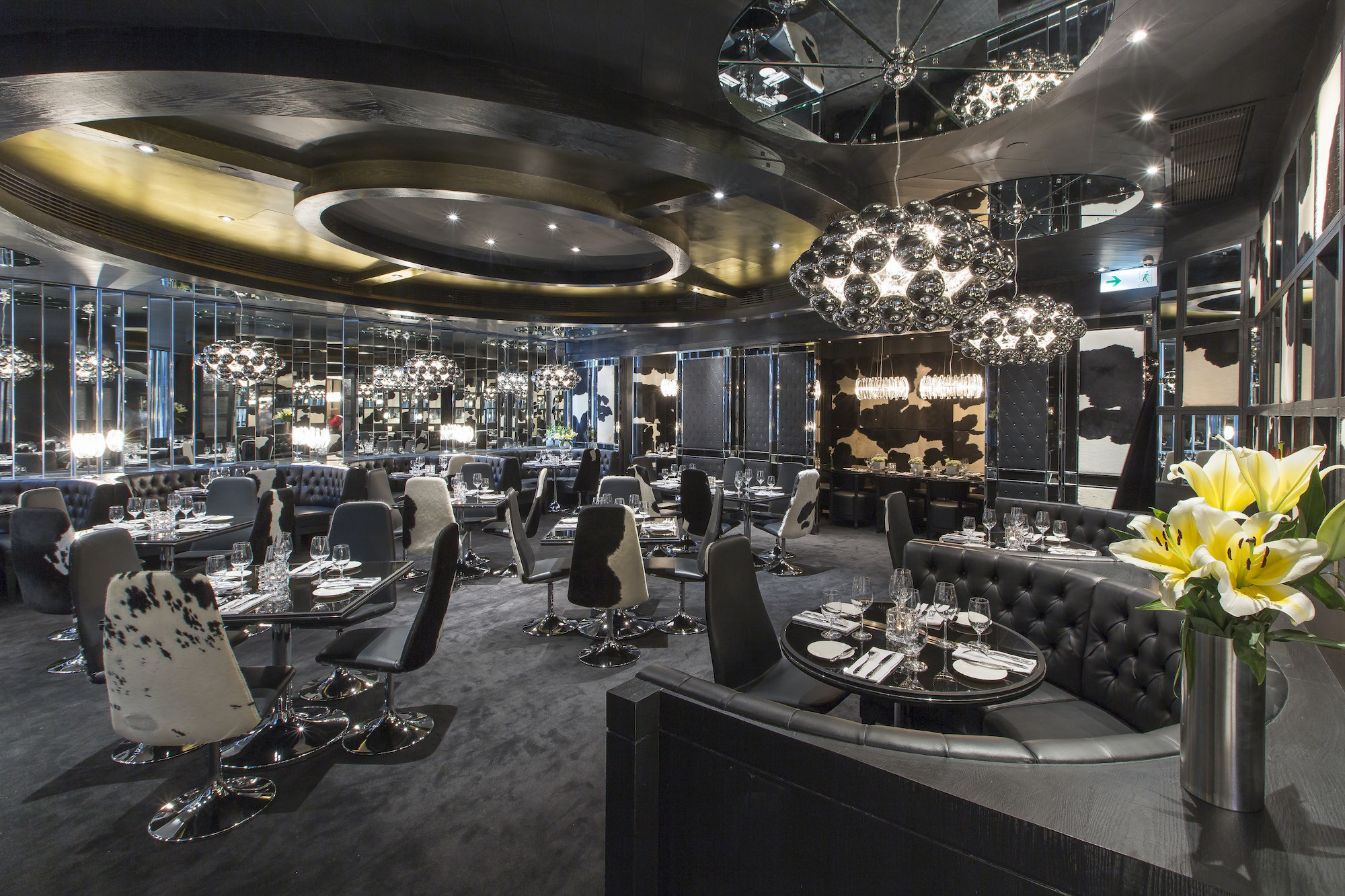 So we have the same interior designer Joyce Wang, except this time the exposed metals and marble surfaces are just that bit more luxe – a long dining room with plush banquette sofas and a striking circular dining room at its centre, with something of a train carriage vibe about it (we’re obviously talking first-class train carriages a la 2046 or Snowpiercer rather than the First Great Western to Slough).