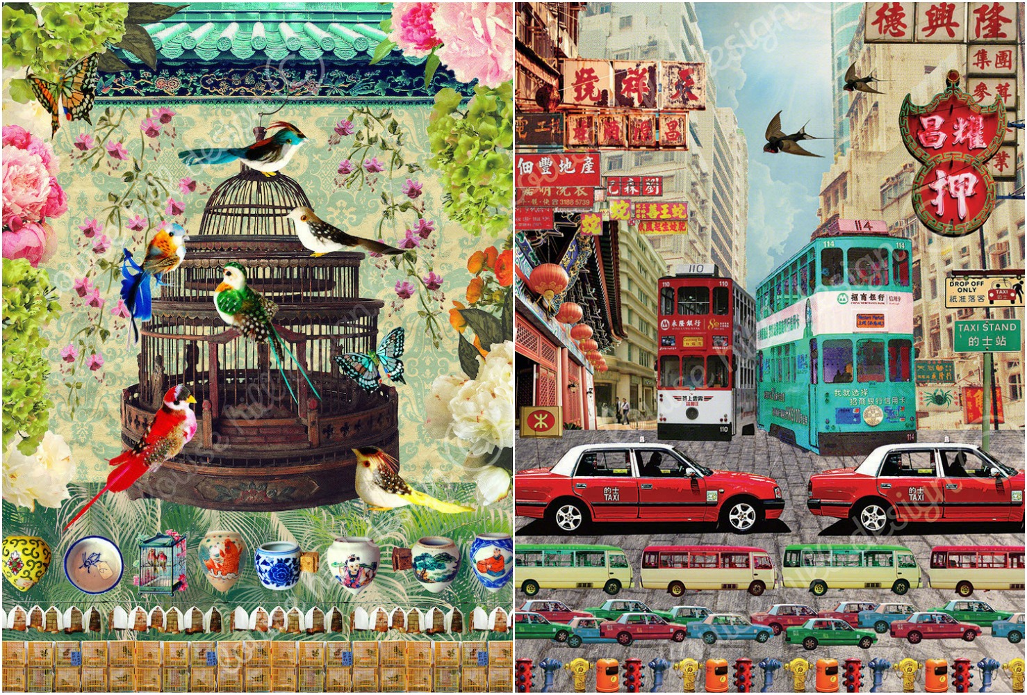 Many of Louise’s pieces are inspired by her time in Hong Kong and I love the richness of detail that goes into each artwork – I’m forever noticing cool new elements and references in there, all of which transport me to certain memories, places and experiences in HK… which is exactly the idea. The Mister Softee van, the yummy dan tat (egg tarts – my favourite!), the old-school wet market red lamps… something new jumps out at you every time you look.