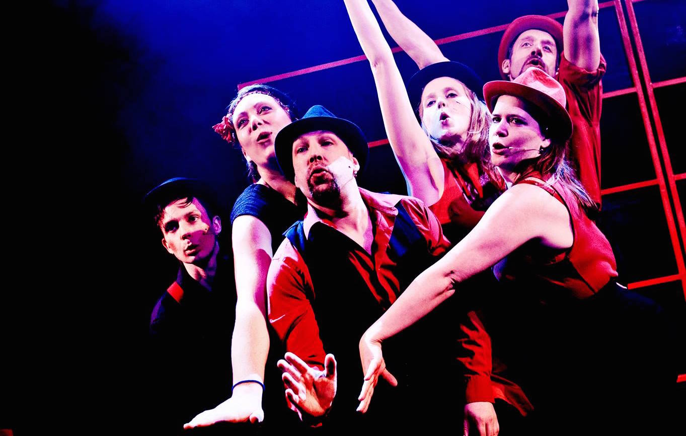 For me, the true showstoppers (geddit) were the ladies of the cast; both Ruth Bratt and Nell Mooney are as quick and sharp-witted as a Cole Porter songbook, and they probably have the best singing voices too. I adored Bratt’s effortless throwaway quips and her seductive Radioactive Kitty with added jazz hands (or should that be paws), whilst Mooney’s rock musical-style song about falling in love with a computer brought belly laughs at each innuendo-laden line filled with hard drives and RAM, plus an inspired middle eight sung entirely in binary. Brilliant.