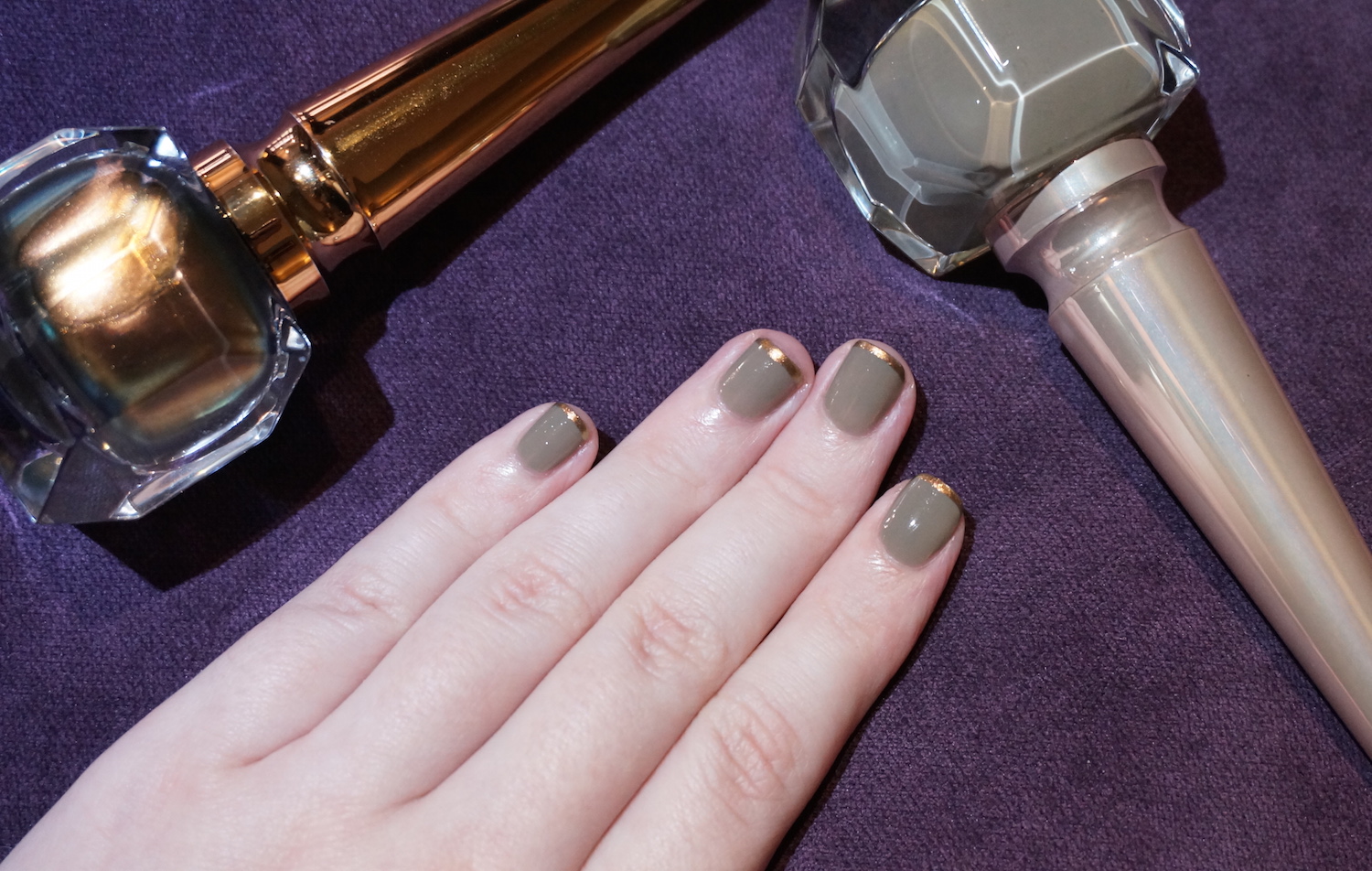 Normally, the manicure includes application of the brand’s signature Rouge Louboutin colour – but with the whole Louboutin polish line to lust over (all adorably displayed on cute shoe-shaped swatches), I couldn’t resist mixing it up a little instead. I opted for Christian Louboutin Alta Perla as the base colour, a sophisticated khaki-taupe slate-grey shape-shifter, with tips in Scarabee III, a glimmering burnished bronze. Another match made in heaven, if I do say so myself!