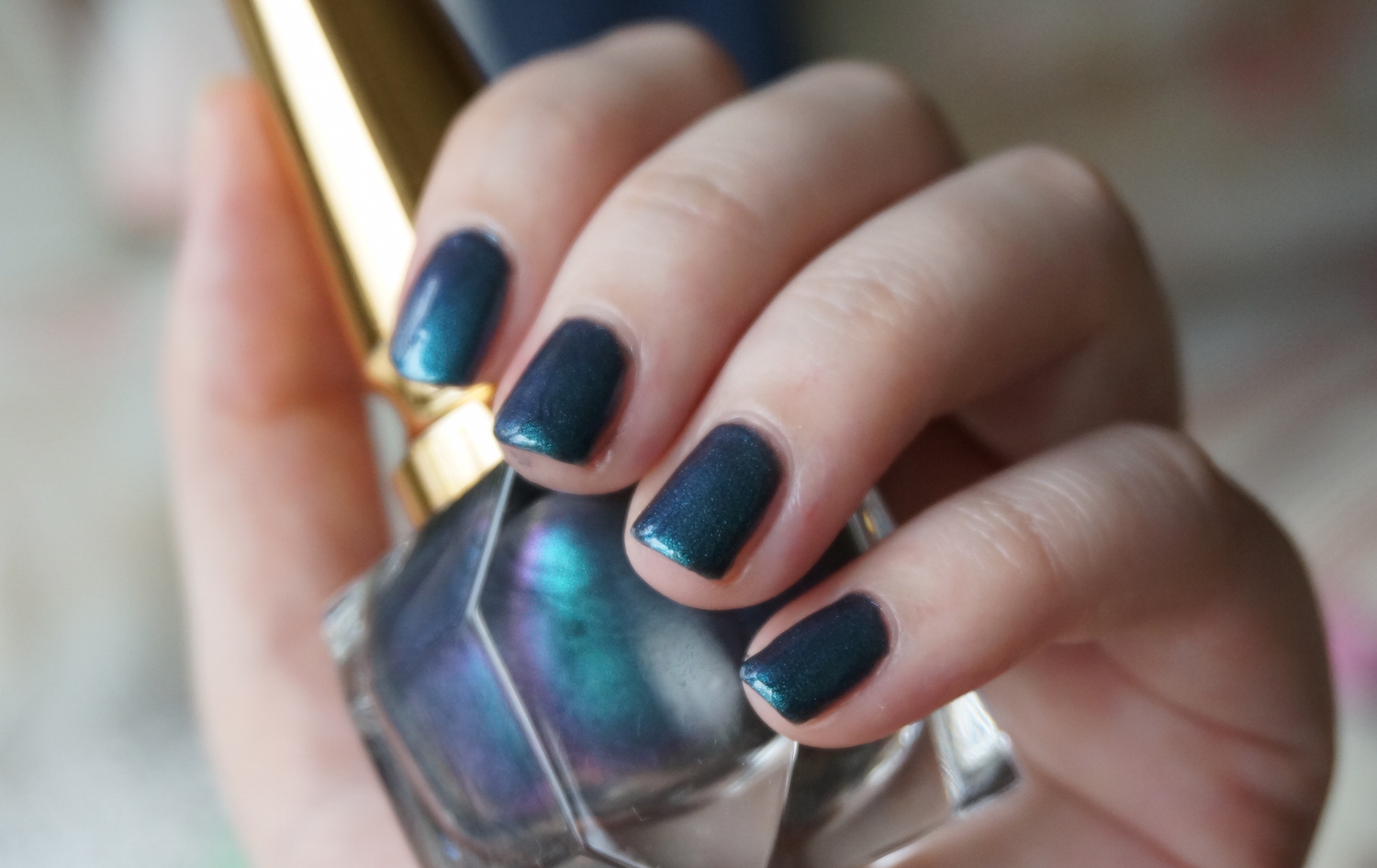 Scarabee II is a beautiful metallic mid-blue that shifts violet and dark teal whenever a camera isn’t looking. It probably has the least obvious colour-shift of the Scarabee trio – but even then, it’s still pretty mesmerising, especially if you’re not a hardened polisholic who’s seen more duochromes than she has sold-out MAC limited edition collections. In fact, Scarabee II is actually very reminiscent of MAC’s Submerged nail polish (from their looooong sold out Alluring Aquatic Collection); if you’re comparing, I’d say Submerged is generally a deeper shade of blue (cue awesome Steps song with creepy video), whilst Scarabee II has more of a lit-from-within luminescence that would be totally at home in Ariel’s underwater kingdom.