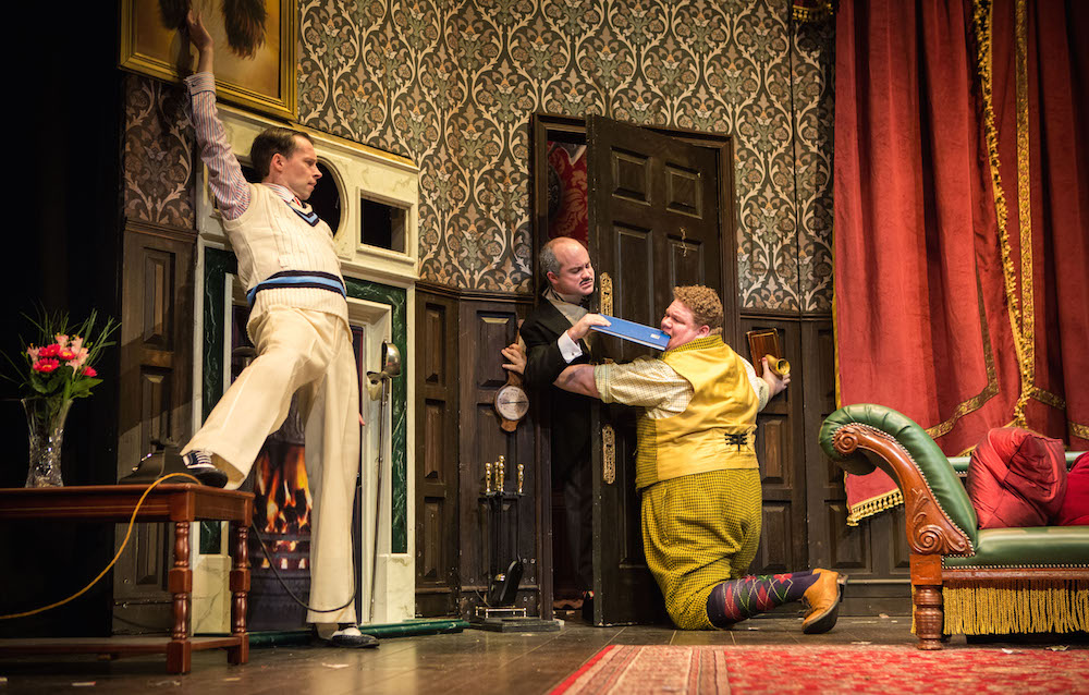 The real standout here though is Nigel Hook’s set. Deceptively low-rent on first appearance, this wobbliest of English country houses soon reveals itself to be as much of a character as the actors who swiftly set about destroying it throughout the evening. Elements fly off and fall apart with the kind of precision timing that would make a Swiss watchmaker proud. It takes some serious skills to escalate chaos this cleverly, and the genius lies in the fact that – even by the end of the show – you’re never quite sure what other terrible tricks it has up its sleeve.