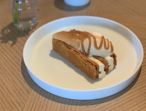Mille-feuille with salted caramel and caramelised pear, Louise