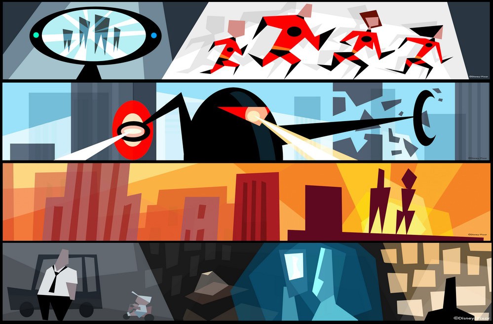 Nevertheless, the artwork itself is brilliant. What part of the exhibition you enjoy the most is strictly down to taste but my favourites were the wistful colourful designs for Up and its dreamy South American landscapes (you get to see a life-size version of the Paradise Falls mural that Ellie and Carl paint above their fireplace in the film) and the spiky dynamic work by Lou Romano for The Incredibles (the style seen in the film’s credits) – looking at the art, I could practically hear that exhilarating thrilling score pumping into my head!
